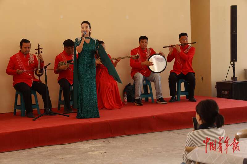 9月13日,新疆和田百和镇稻香村的一个小院里,演员们为游客表演新疆歌舞。中青报·中青网记者 王鑫昕/摄