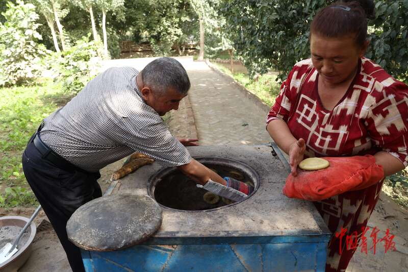 9月13日,新疆和田百和镇稻香村,村民们在烤馕。中青报·中青网记者 王鑫昕/摄