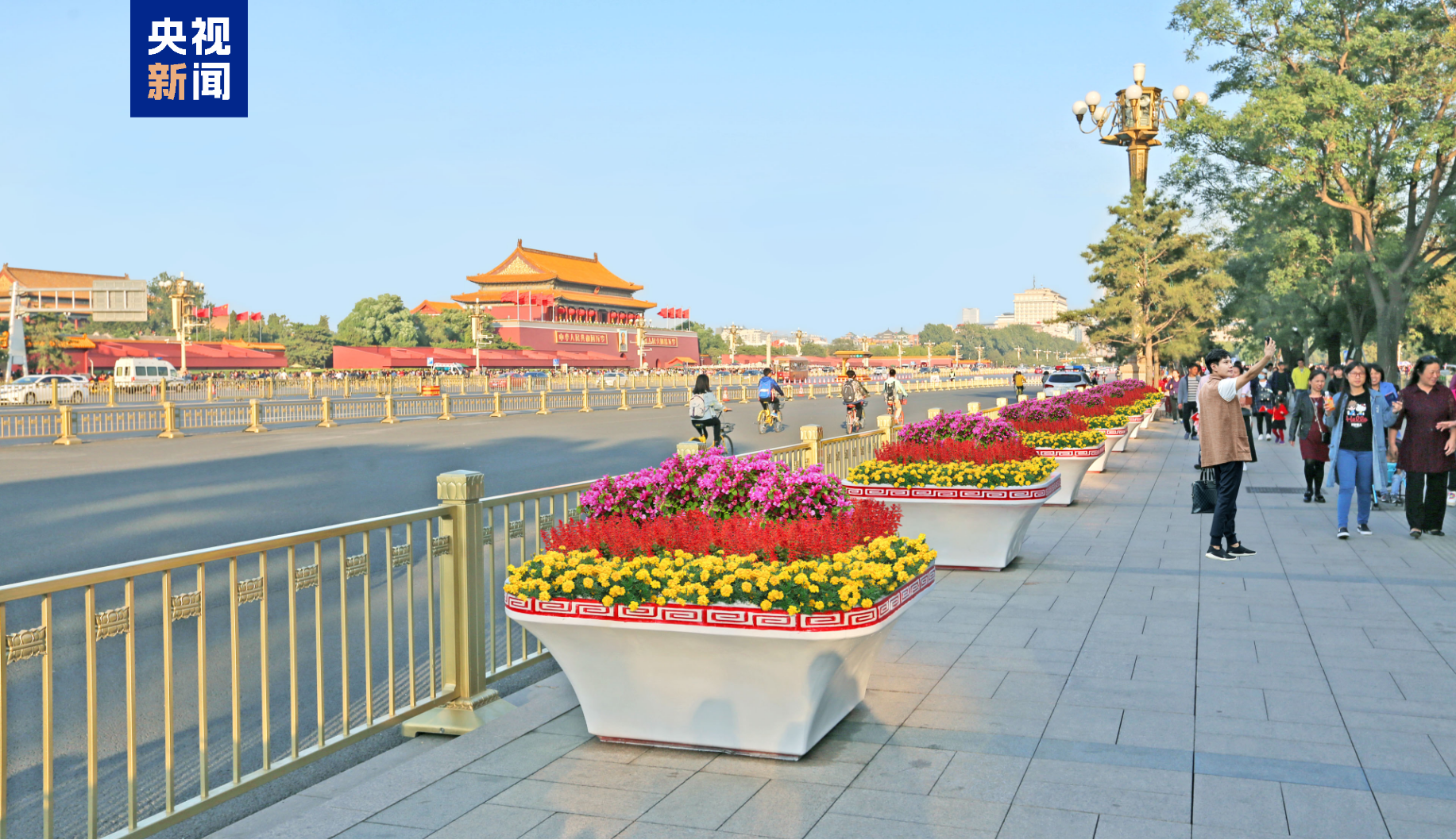 9月16日,北京市园林绿化局公布了中华人民共和国成立七十六周年庆祝活动天安门广场及长安街沿线花卉布置方案。