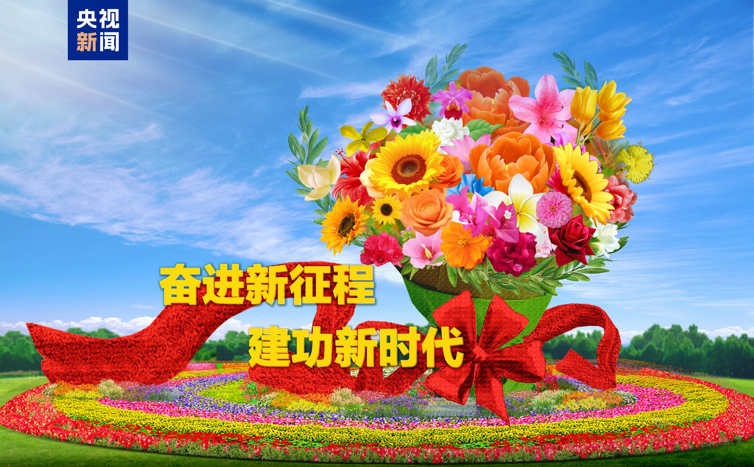 为营造隆重热烈、喜庆祥和的氛围,天安门广场、长安街沿线以“奋进新征程、建功新时代”为主题进行花卉布置,体现再出发,开新局,在以习近平同志为核心的党中央坚强领导下,全党全国各族人民振奋精神、满怀信心、鼓足干劲,汇聚起推进中国式现代化的磅礴力量。