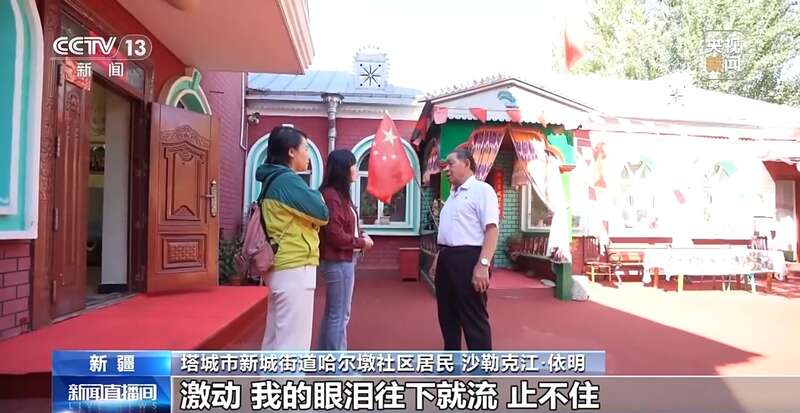 新疆塔城市新城街道哈尔墩社区居民 沙勒克江·依明:那个脚步声,很远的地方一个声音能听到。越到跟前了,我的心跳得跟他们脚步声一样,嘣嘣嘣,我说我的心跳那么快,还是他们的脚步声我都分不清。激动,我的眼泪往下就流,止不住。这就是我人生中最幸福的时刻。