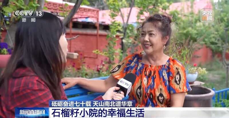 新疆塔城市新城街道哈尔墩社区居民 沙娜木·沙尔达尔:其实就像这个庭院里面开的各种花一样,代表了咱们不同的民族,我们就是像石榴籽一样紧紧抱在一起的这么一个大家庭。真的是谁都离不开谁。