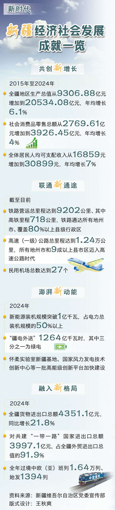 立足区位和政策优势,新疆抓住“一带一路”核心区建设、新疆自由贸易试验区建设重大机遇,不断创新对外交流方式,发展更高层次开放型经济,为发展新质生产力创造新优势。