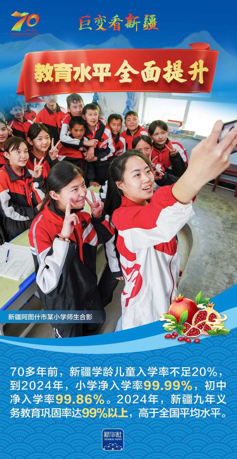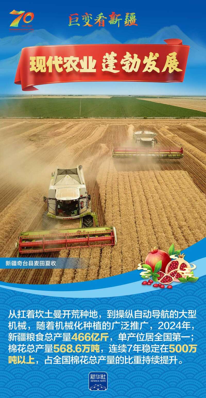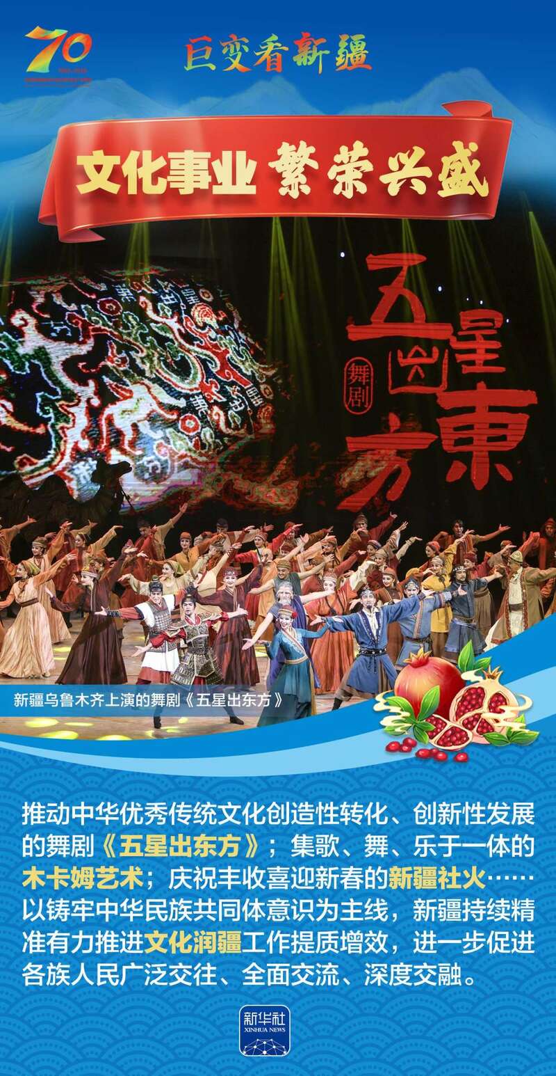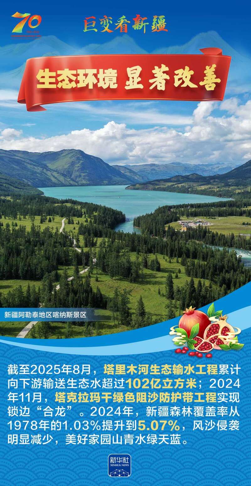 1955年10月1日,新疆维吾尔自治区成立,开启了新疆民族区域自治的光辉历程。70年来,新疆各族人民生活水平大幅提高,社会事业全面进步,生态环境显著改善……让我们跟随这组海报,一起见证在党中央坚强领导下,新疆各族群众团结奋进、砥砺前行的光辉历程,感受天山南北高质量发展的壮阔画卷。