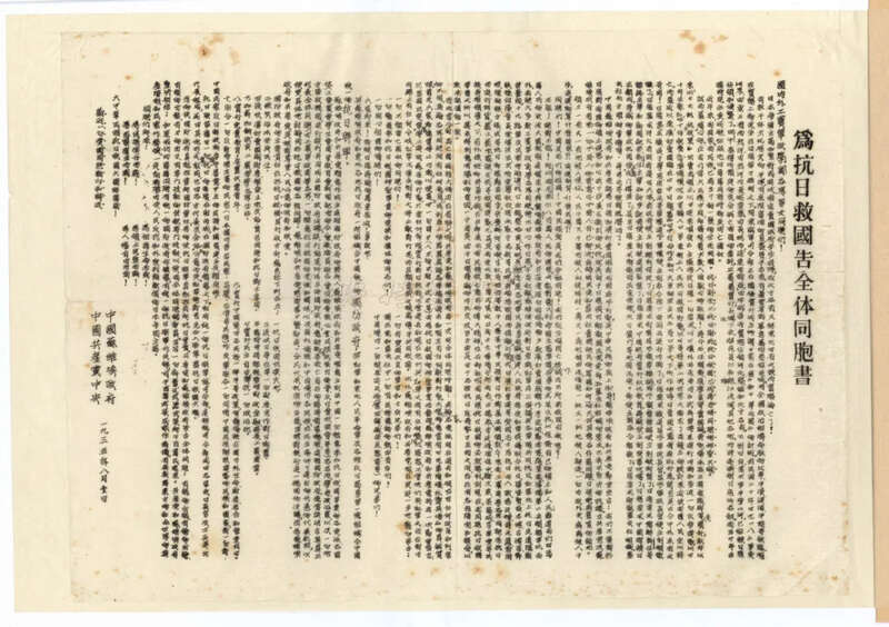 《中国共产党为日本帝国主义强暴占领东三省事件宣言》等