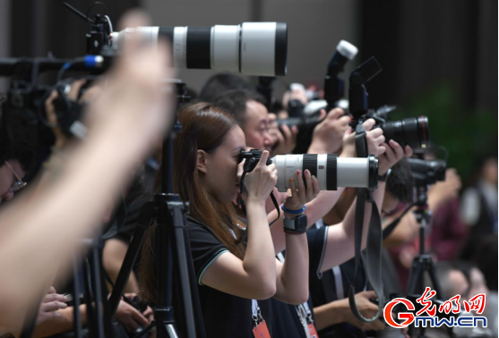 大批记者在开幕式现场报道。
