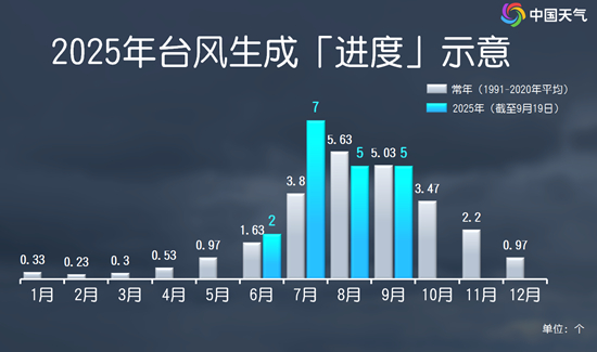 今年以来,西北太平洋和南海上已经生成了19个台风,较常年同期略偏多。从历史统计数据看,9月也是台风的高产月,常年平均可以生成5.03个台风,仅次于8月。