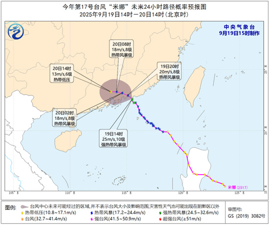 据广东省气象台消息,今年第17号台风“米娜”已于19日14时50分前后在汕尾城区沿海登陆,登陆时中心附近最大风力10级(25米/秒,强热带风暴级),中心最低气压990百帕。预计,“米娜”将以10~15公里的时速继续向西偏北方向移动,强度逐渐减弱。明天(20日),广东、广西、福建等地仍将有强风雨天气,局地或现特大暴雨。