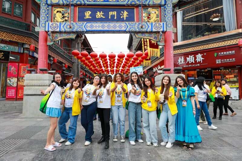 走进天津古文化街,串联的红灯笼和鳞次栉比的中式建筑让选手们发出阵阵惊叹。作为国家5A级旅游景区,古文化街内汇聚了十八街麻花等众多非遗和老字号品牌,还有各类特色美食,是感受“中国味、天津味、文化味、古味”的绝佳场所。