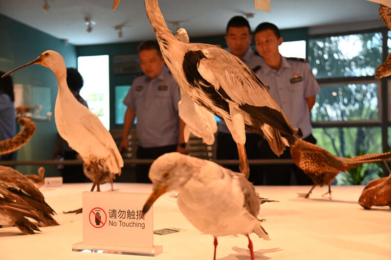 玉环市漩门湾国家湿地公园科普馆展示的鸟类标本。 中青报·中青网记者 李剑平 /摄