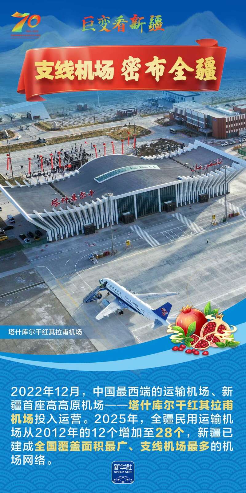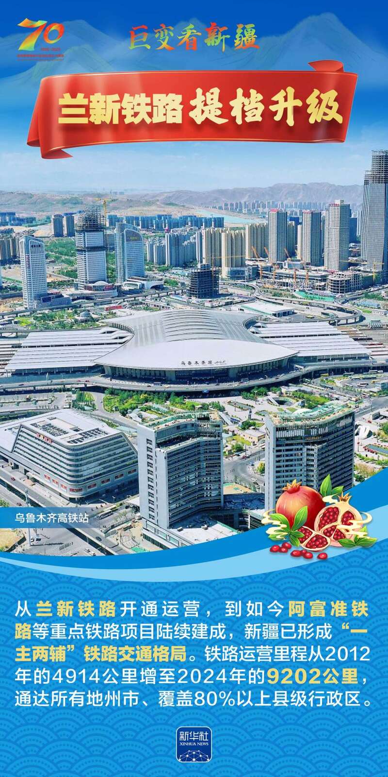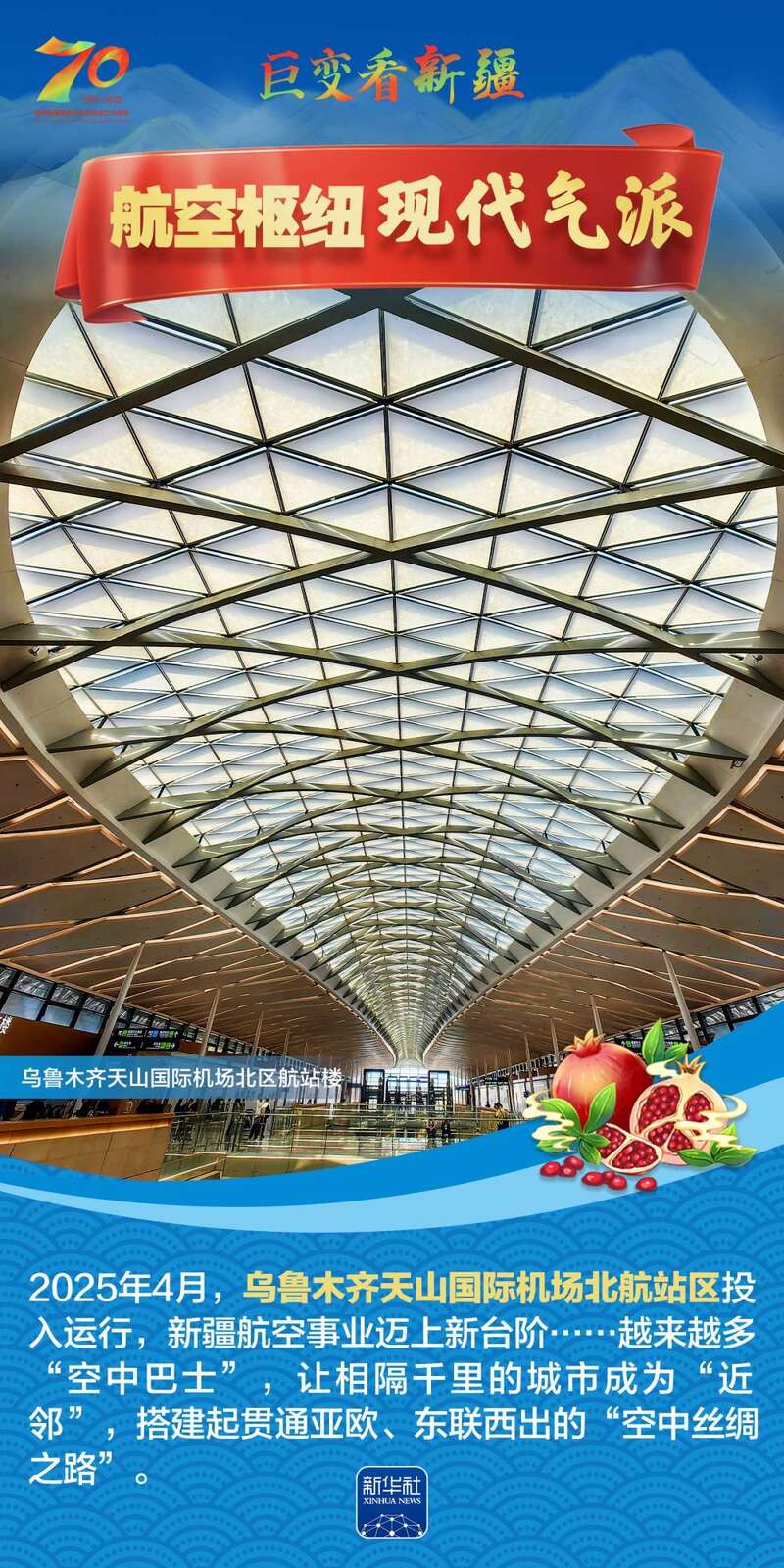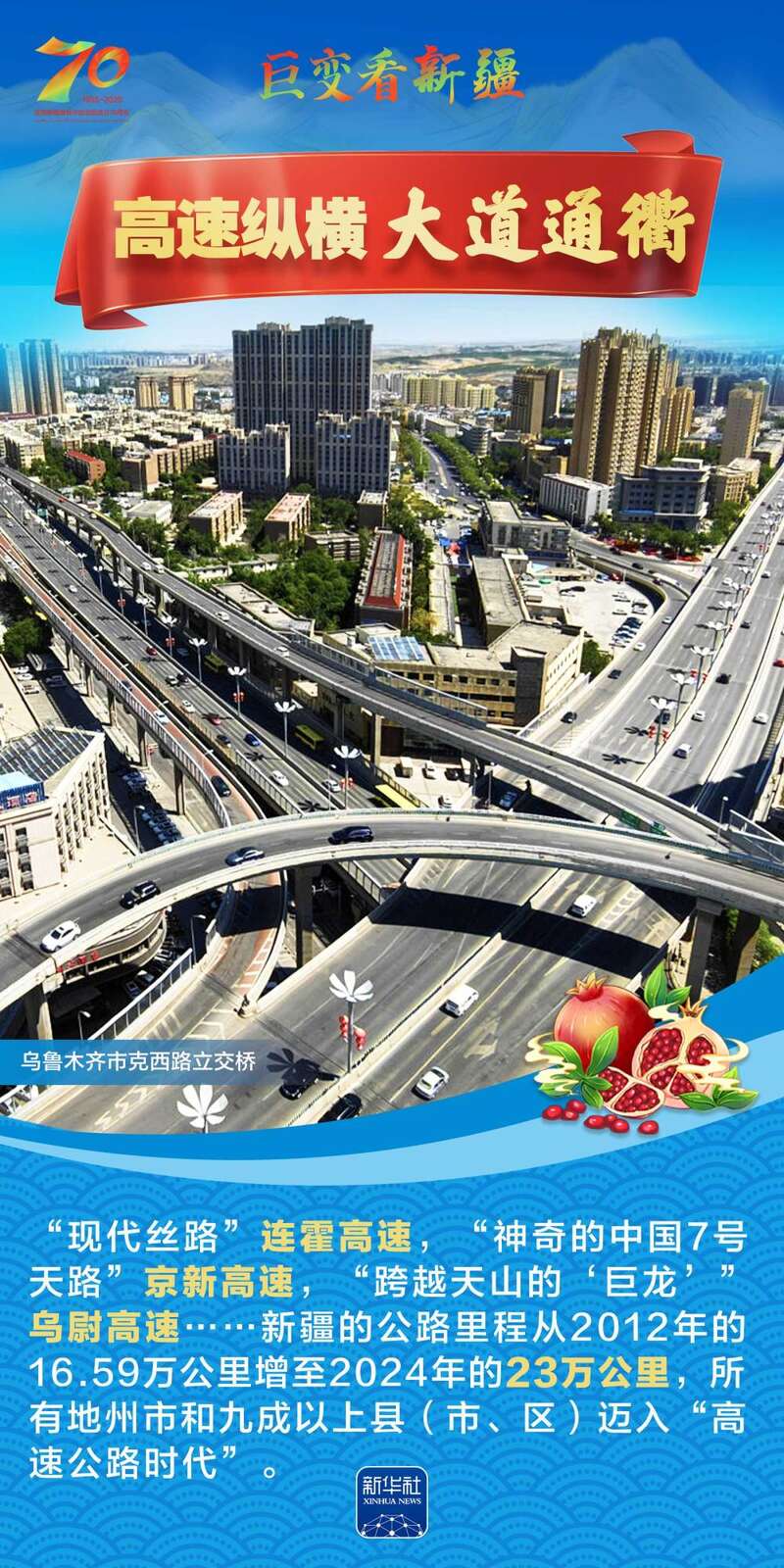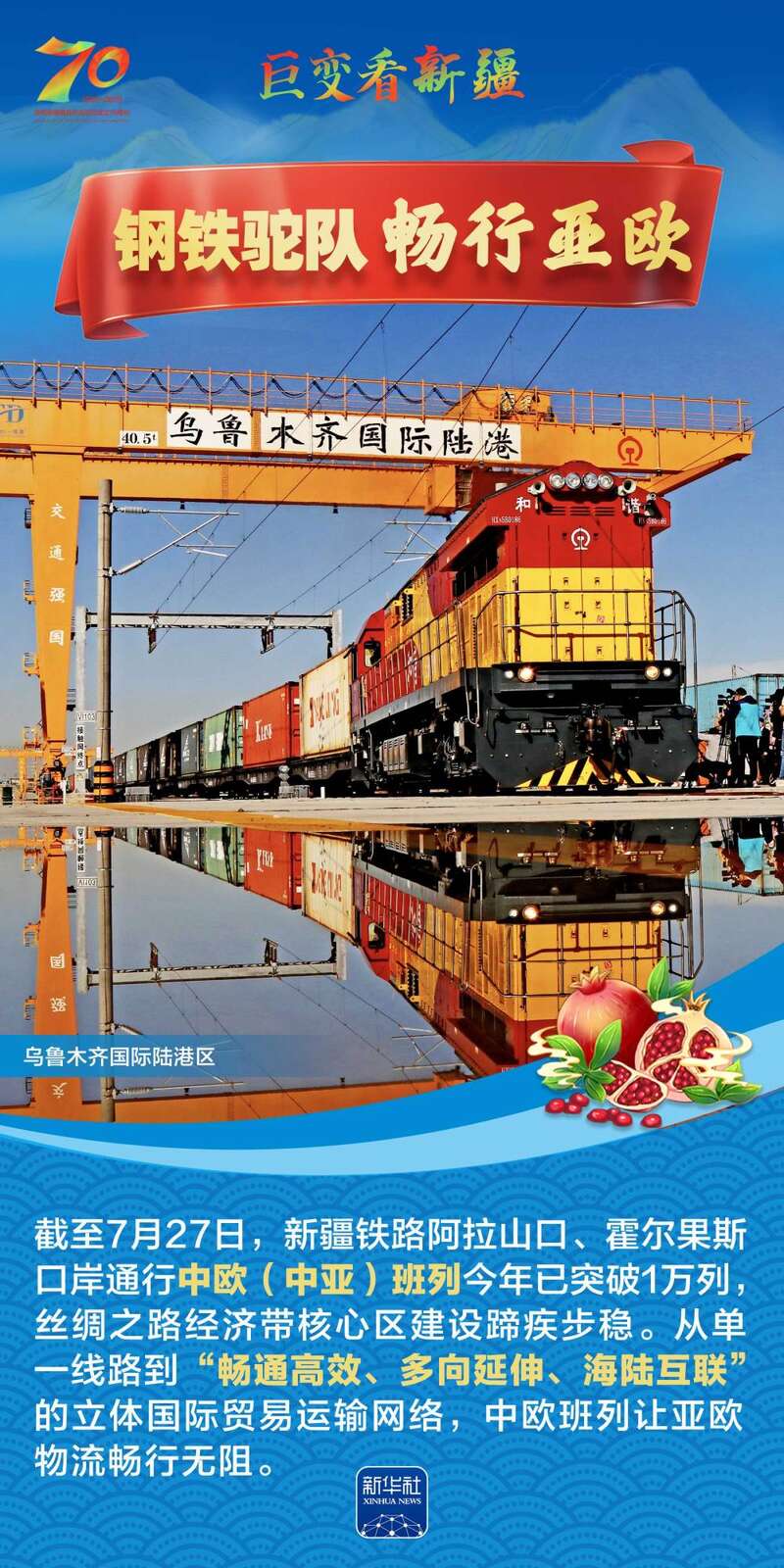 今年是新疆维吾尔自治区成立70周年。70年来,新疆的交通建设日新月异。从驼铃声声、马蹄嘚嘚到铁流纵横、银鹰高翔,一座座交通枢纽辐射四方,一条条“钢铁巨龙”蜿蜒逶迤,一个个支线机场星罗棋布,现代化的新疆立体交通网络日益形成。让我们跟随这组海报,一起见证穿越“三山两盆”、贯通欧亚大陆的新时代新疆交通画卷。