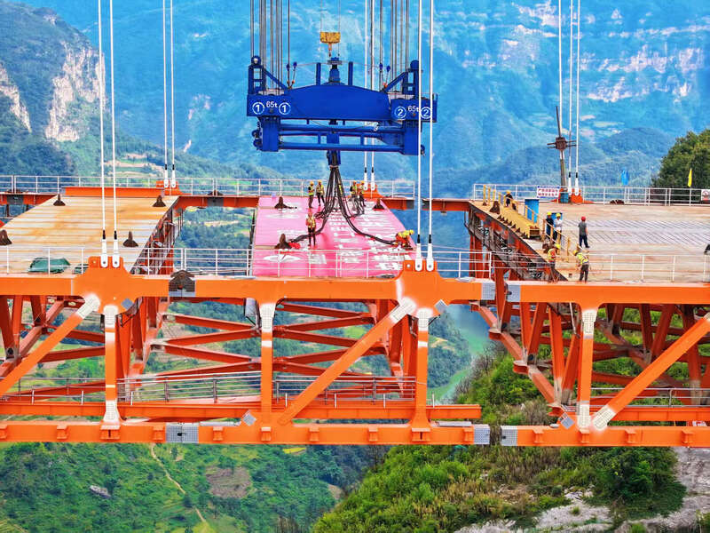 中国青年报客户端讯(赵宝龙 张纪林 王祥 李守钦 中青报·中青网记者 宋宝颖)9月23日上午,随着最后一节钢梁精准就位,由贵州交投集团有限公司投资建设、中铁广州工程局集团承建的安盘高速天门特大桥顺利实现合龙。这座横跨北盘江的超级工程,桥面距江面高度560米、全长1553米、主跨820米,建成后将成为峡谷地区世界第三高桥及全球最高双向六车道钢桁梁悬索桥,标志着我国桥梁建设技术再次取得重大突破。