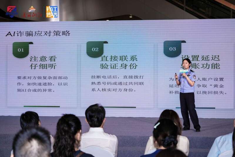 民警现场传授防范AI换脸拟声诈骗技巧。主办方/供图
