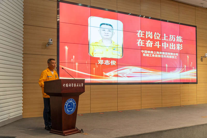 中国青年报客户端讯(封叶馨 王鹏 中青报·中青网记者 王磊 )日前,第七届“最美铁路人”先进事迹巡回报告团走进中国科学技术大学。报告会讲述“最美铁路人”为民服务、攻坚克难、奋斗追梦的动人故事,为学校400余名师生及合肥站等站区铁路职工带来一堂生动的“大思政课”。