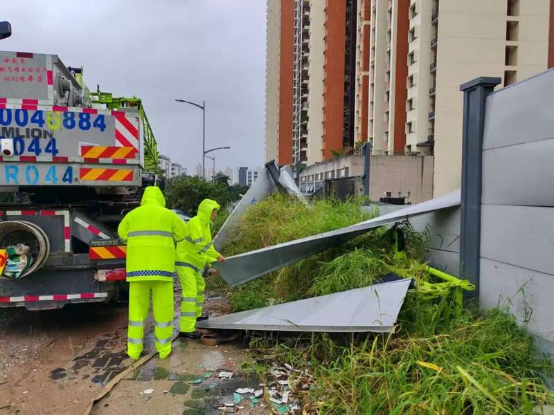 针对因大风导致的树木倒伏、围挡倒伏,深圳各部门、各街道正全力组织人员开展清理工作。