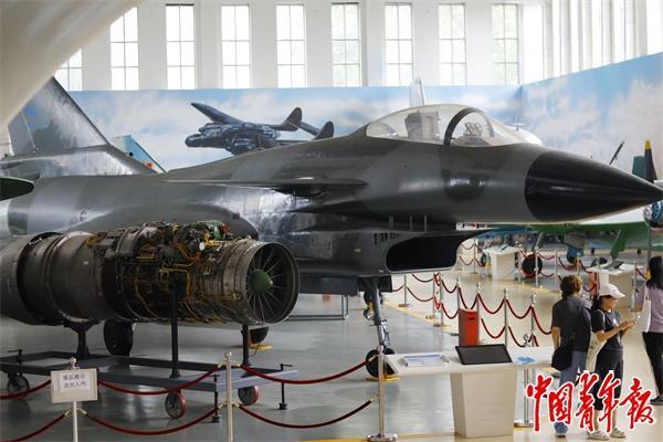 游客在北京航空航天博物馆里参观歼-10战斗机。中青报·中青网见习记者 黄晓颖/摄