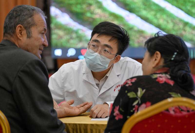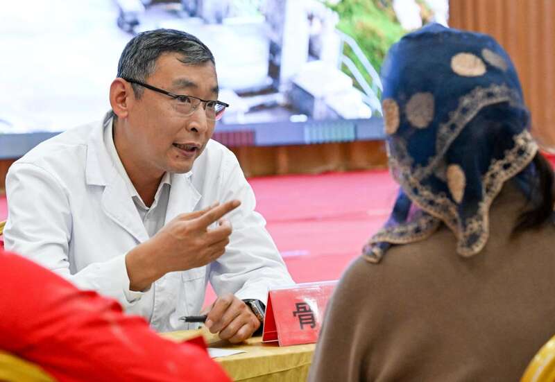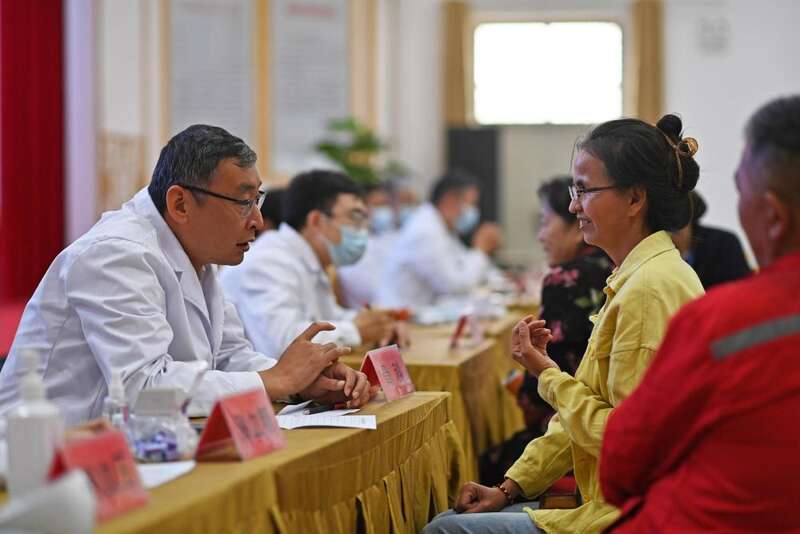 9月19日,铁门关市人民医院医生在达西村为村民义诊。