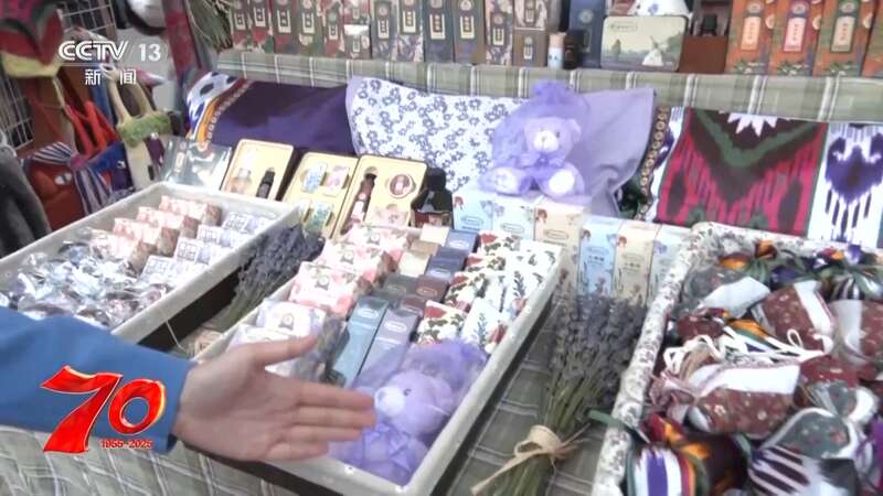 在这记者还看到了一辆用新鲜的薰衣草装扮好的花车,上面摆满了薰衣草制作的精油、手工皂、香薰等产品,既好闻又好看。