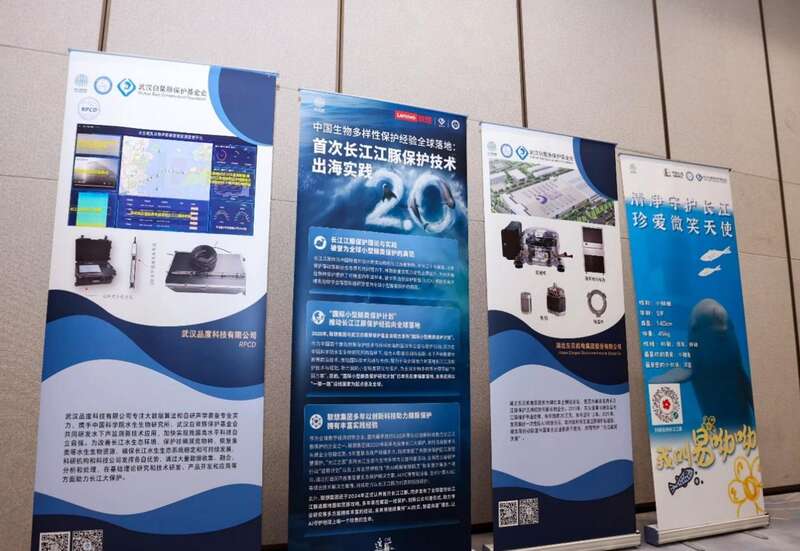 在中国鲸豚监测和保护技术边会上,中国科学院水生生物研究所、武汉白鱀豚保护基金会、联想集团携AI智慧鲸豚保护项目亮相,展示了长江江豚保护成果及最新进展。
