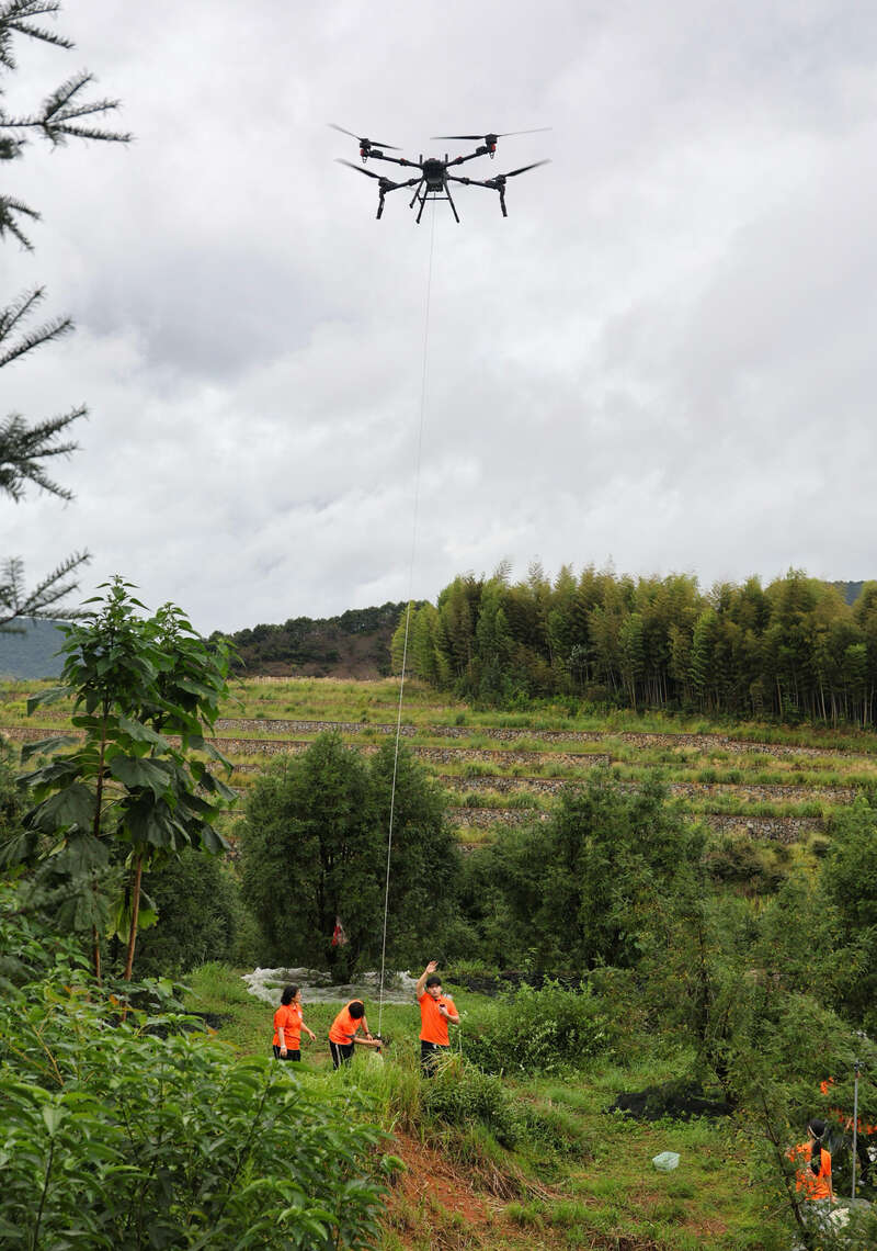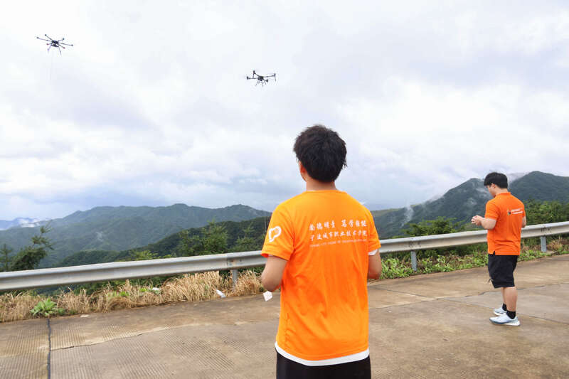 大学生用无人机帮助果农运输香榧果。宁波城市职业技术学院/供图