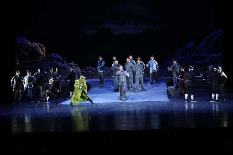舞台上,舞美设计配合光影变幻,还原出紧张激烈的战斗场景,乌兰牧骑的演员们用充满张力的表演,诠释了革命者的坚定信仰与家国情怀。