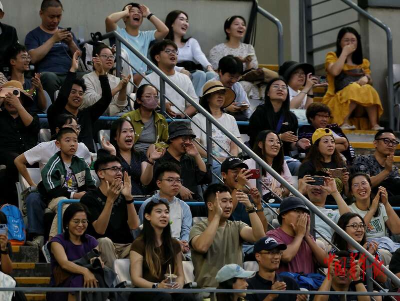 9月29日,北京国家网球中心,观众为佩古拉和拉杜卡努的精彩对决欢呼。中青报•中青网记者 曲俊燕/摄