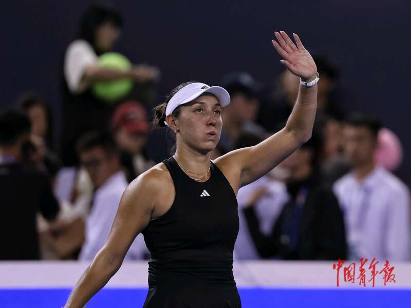 9月29日,北京国家网球中心,美国选手佩古拉赢得比赛后向观众挥手致意。中青报•中青网记者 曲俊燕/摄