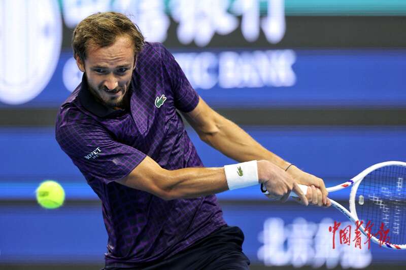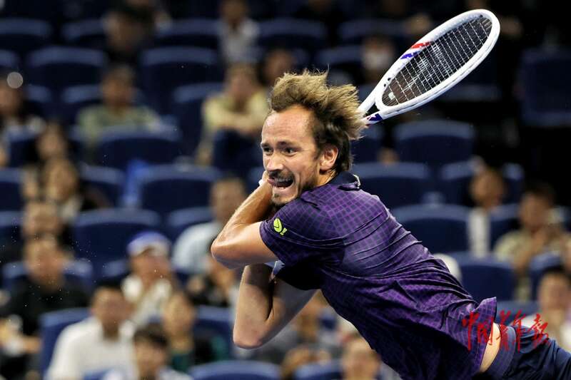 9月29日,北京国家网球中心,2025中国网球公开赛男子单打1/4决赛,梅德韦杰夫在比赛中。中青报·中青网记者 曲俊燕/摄
