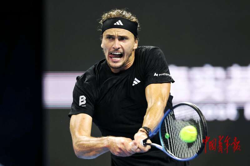 9月29日,北京国家网球中心,2025中国网球公开赛男子单打1/4决赛,兹维列夫在比赛中。中青报·中青网记者 曲俊燕/摄