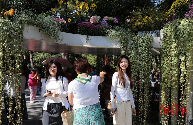 9月30日,北京日坛公园,市民在鲜花长廊中穿梭和打卡。中青报·中青网记者 陈剑/摄