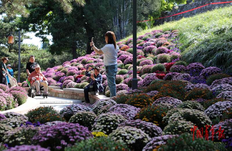 9月30日,北京日坛公园,市民在花丛中拍照。中青报·中青网记者 陈剑/摄