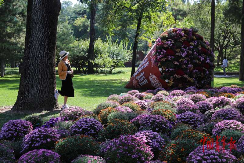 9月30日,北京日坛公园,一位市民在五颜六色的花海中拍照。据了解,近期,北京全市秋花进入盛花期,各公园景区以花为主题的景观纷纷亮相,迎接国庆和中秋佳节的到来。中青报·中青网记者 陈剑/摄
