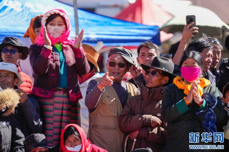 图为第九届象雄文化旅游节开幕式现场喝彩的群众(9月26日摄)。新华网 柑丹鸯琦摄