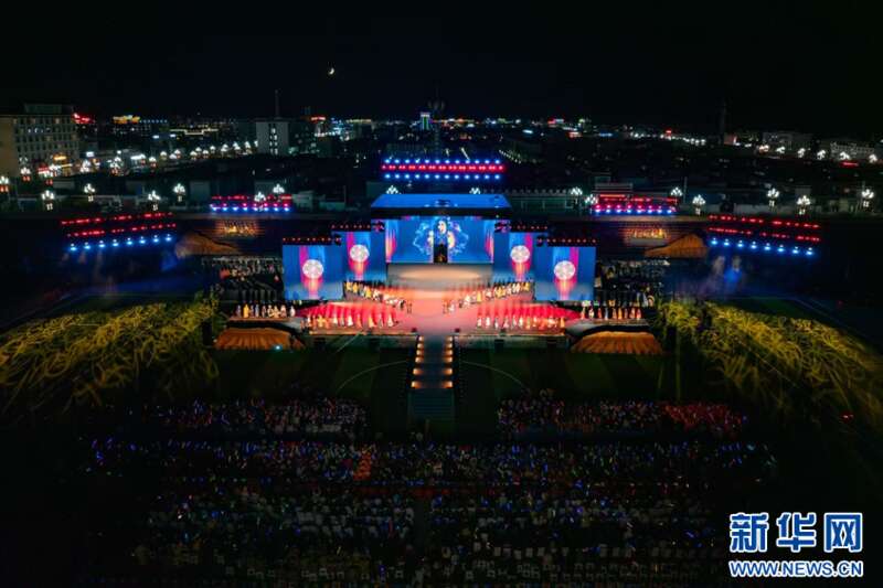 图为第九届象雄文化旅游节开幕式现场(无人机照片,9月26日摄)。新华网 旦增努布摄