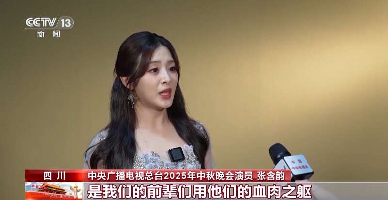 中央广播电视总台2025年中秋晚会演员 张含韵:我深刻理解到,我们这一代人的幸福安康是我们的前辈们用他们的血肉之躯,用他们顽强的、无比坚毅的力量为我们争取来的。通过音乐或者是通过我们现代年轻人的口口相传,让它传承下去,让大家不要忘记我们是如何从曾经走到现在的,我们是如何拥有当下的幸福的。