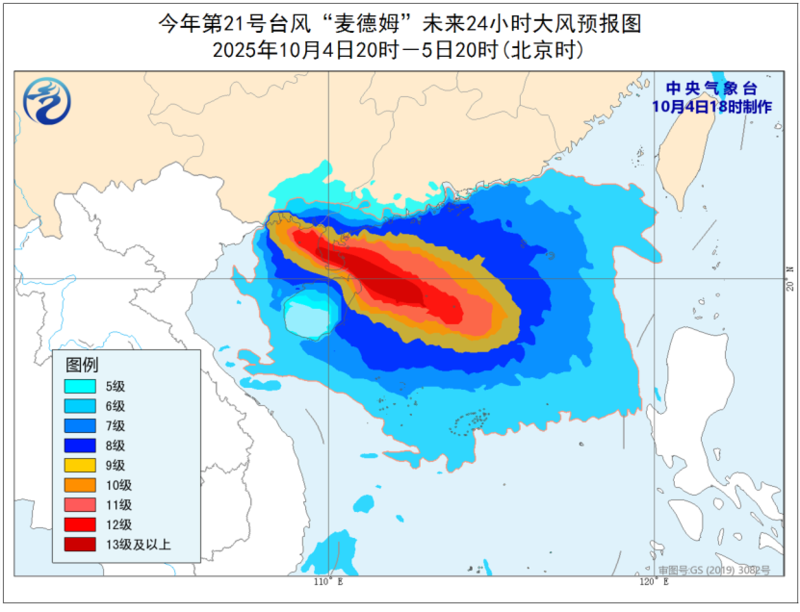 中央气象台10月4日18时发布台风红色预警: