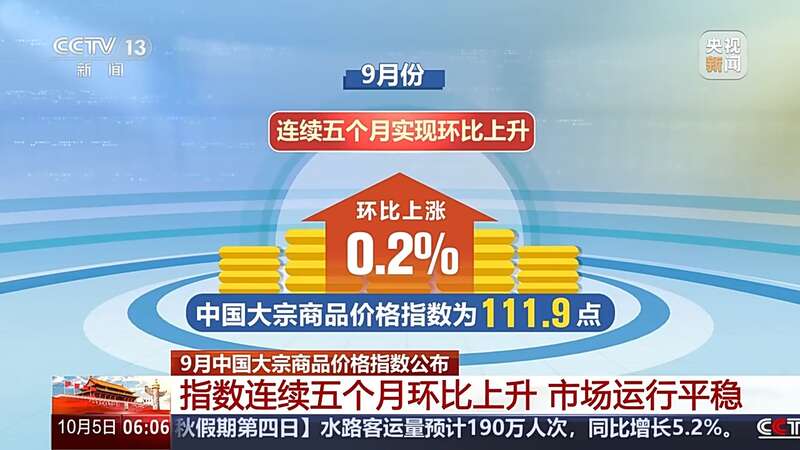 中国物流与采购联合会今天(5日)公布9月份中国大宗商品价格指数。从指数运行情况看,指数连续五个月实现环比上升,表明企业预期乐观,生产经营保持扩张,大宗商品市场总体运行平稳。
