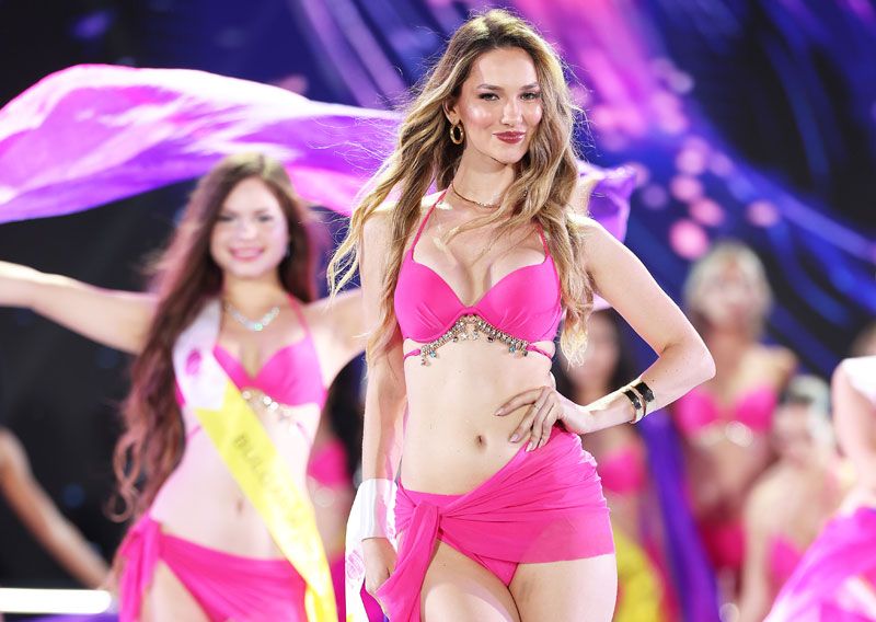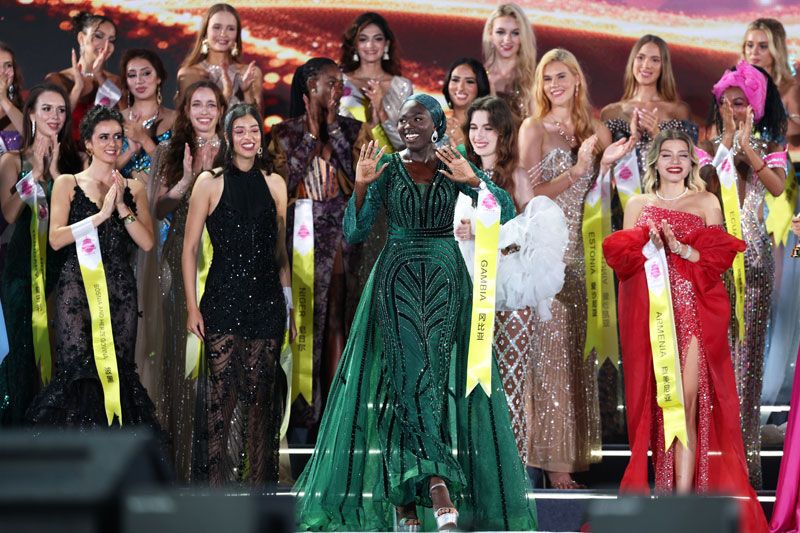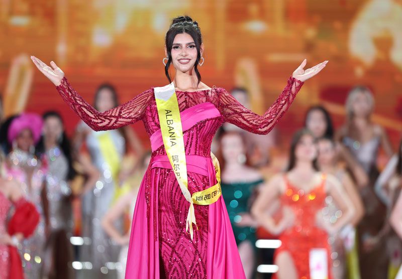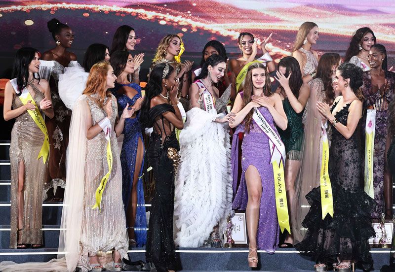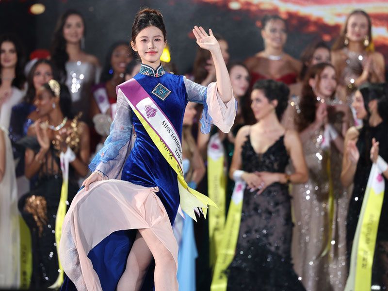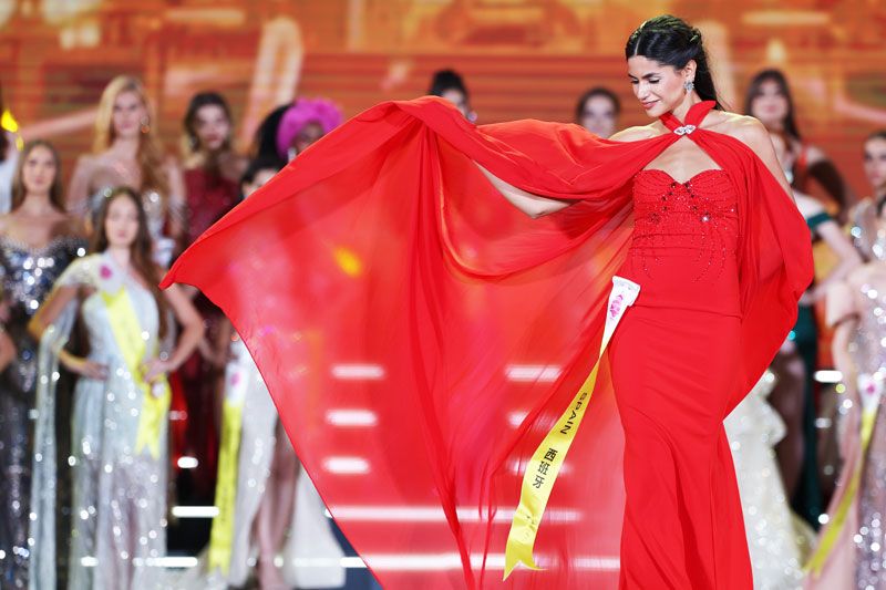 在最后的展示环节,佳丽们身着晚礼服再次登台,精彩演绎了典雅与端庄。站在世界旅游小姐的舞台上,她们身着华美晚礼服的模样,恰如一场流动的盛宴。聚光灯下,丝绸与薄纱勾勒出优雅轮廓,缀满的晶石如星河倾泻,随步履在裙摆间流转生辉。有人裹着欧根纱制成的云霞,每一步都漾起涟漪;金色鱼尾裙摆绽开成浪,宝蓝丝绒曳地流淌出午夜苍穹——世界各地的风情在她们身上获得了生命。
