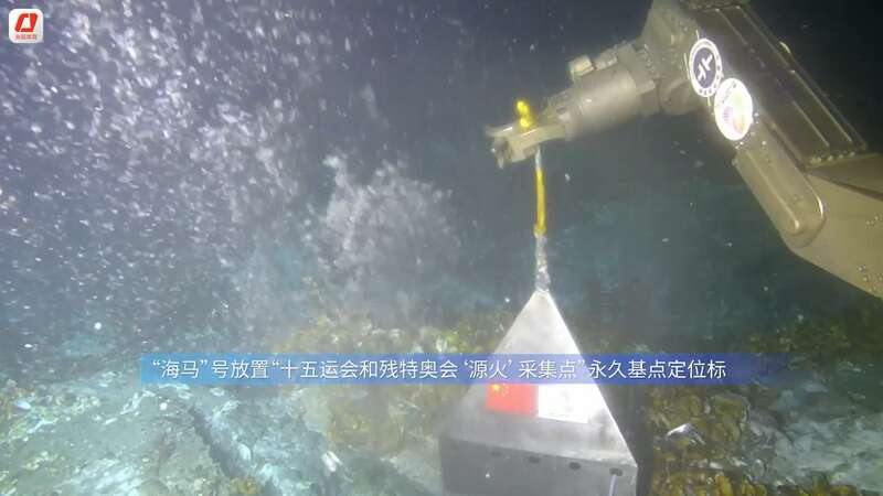 采集“源火”后,科研人员通过“海马”号在海底采集点位放置“十五运会与残特奥会‘源火’采集点”永久基点定位标,纪念这次具有开创性的“源火”采集行动。