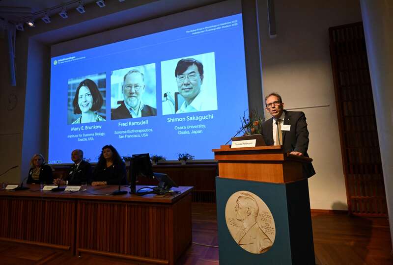 当地时间10月6日,瑞典卡罗琳斯卡学院宣布,将2025年诺贝尔生理学或医学奖授予来自美国的玛丽·E·布伦科与弗雷德·拉姆斯德尔,以及来自日本的坂口志文,以表彰其“在外周免疫耐受方面的发现”。视觉中国供图