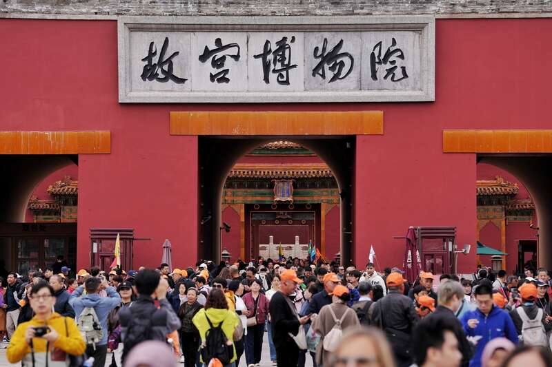 10月10日,北京故宫博物院建院100周年之际,游客参观打卡故宫神武门。视觉中国供图