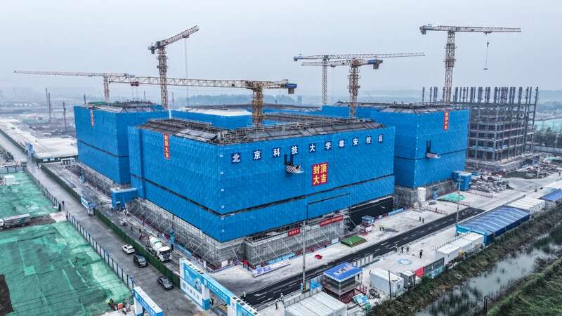 作为首批疏解到雄安新区办学的四所高校之一,北京科技大学雄安校区占地2450亩,规划建筑面积190万平方米,计划分两期建设,其中一期工程建筑面积94.18万平方米,分首开项目和三个组团项目开展建设。自2023年11月开工以来,北京科技大学雄安校区建设持续提速,目前,首开项目实验实习保障中心已建成并通过质量竣工验收,第一组团项目即将全面封顶,第二组团项目已全面开工,第三组团项目可行性研究报告正在国家审批阶段,一期工程已累计开工约90万平方米。