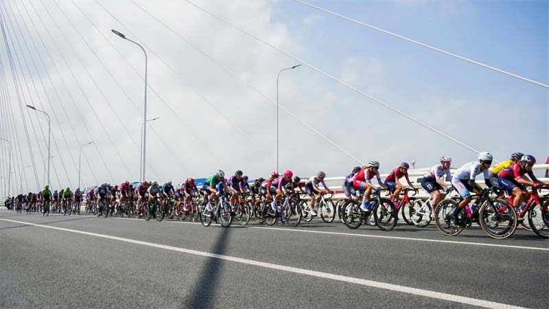 10月15日,2025年永达天恒·环崇明岛国际自盟女子公路世界巡回赛继续飞驰在世界级生态岛的绿色长廊中。次日比赛更加白热化,93名车手们在全长128.6公里的崇东赛段,展开了一场速度与耐力的较量。最终,阿联酋ADQ车队23岁小将范·罗伊延·索菲,夺得第二赛段赛段冠军,获得赛事黄衫及绿衫双衫加身。车队总成绩排名中,罗兰德沃卢伊车队、瓦尔克韦塞尔斯车队和阿联酋ADQ车队暂列前三。
