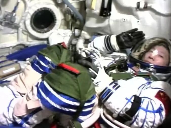 杨利伟面向舱内镜头敬礼