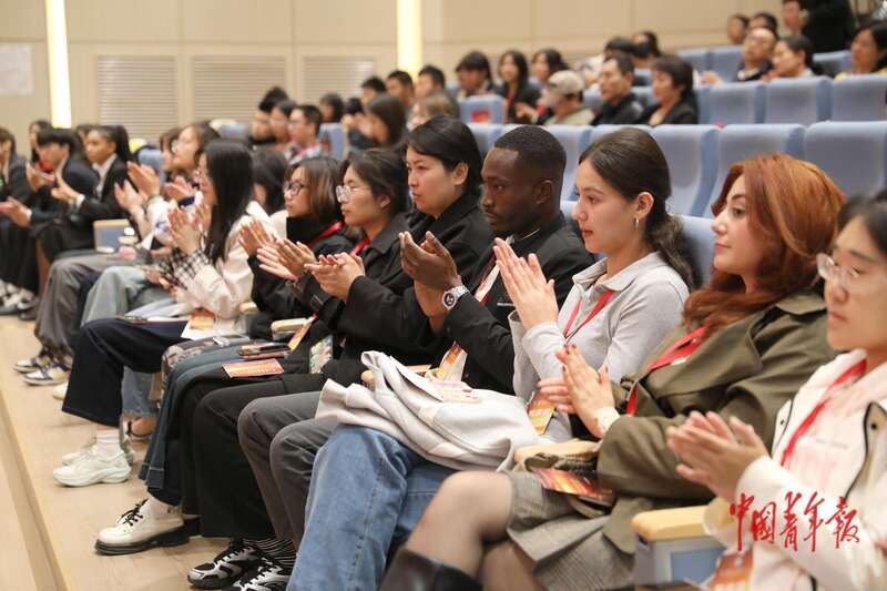 10月16日,北京第二外国语学院,第二届北京市朝阳区高校大学生模拟政协提案大赛决赛现场,中外大学生观摩团在台下鼓掌。中青报·中青网记者 陈剑/摄