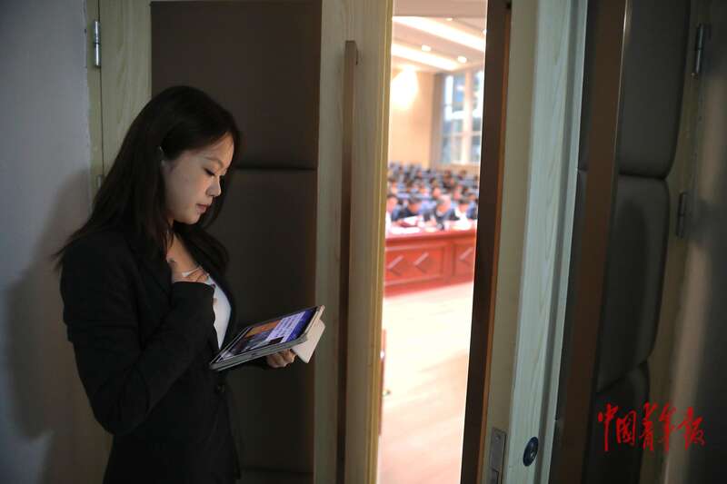 10月16日,北京第二外国语学院,第二届北京市朝阳区高校大学生模拟政协提案大赛决赛现场,来自中国音乐学院的学生代表葛茜茜在后台等候,准备上场进行提案陈述。中青报·中青网记者 陈剑/摄
