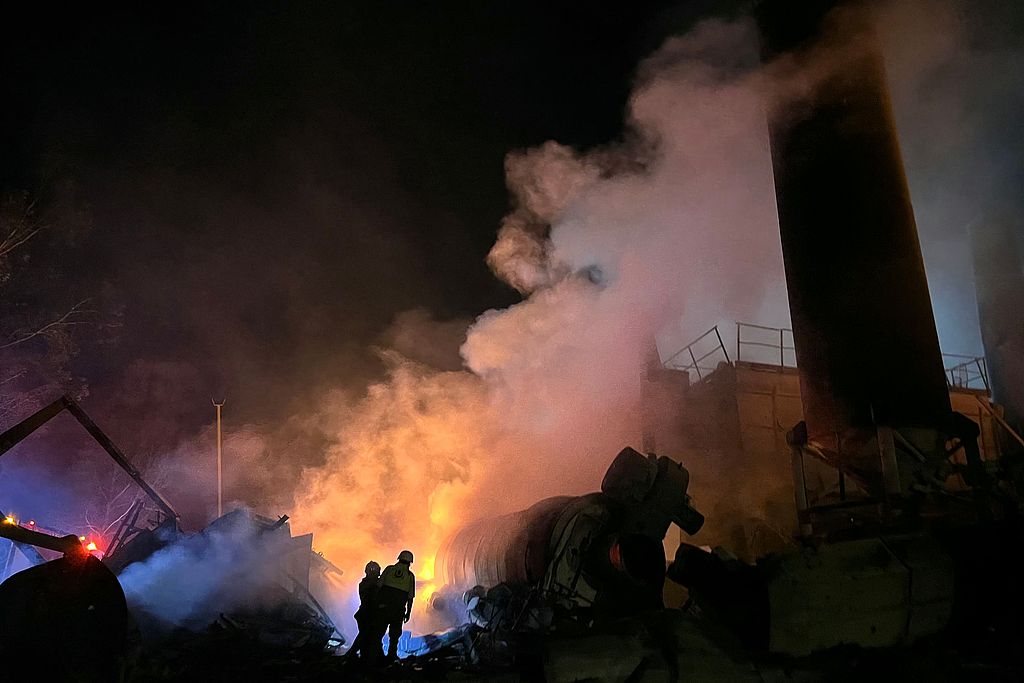 当地时间2025年10月16日,黎巴嫩南部杜埃尔附近安萨尔村,消防员扑灭以色列空袭后水泥厂综合设施的火灾。黎巴嫩卫生部称,以色列10月16日在黎巴嫩南部的袭击造成1人死亡、7人受伤,而以色列军方表示袭击目标是真主党及其盟友。然而,黎巴嫩总统约瑟夫·奥恩坚称以色列的袭击目标是“民用设施”,并谴责他所说的去年谈判达成的停火协议遭到破坏。