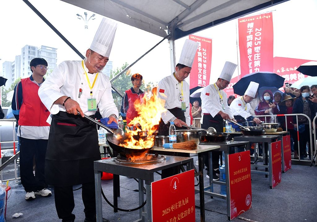 山东枣庄:“中国辣子鸡之乡”举行炒鸡争霸赛