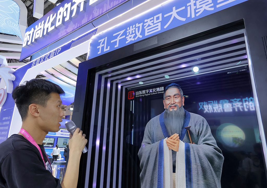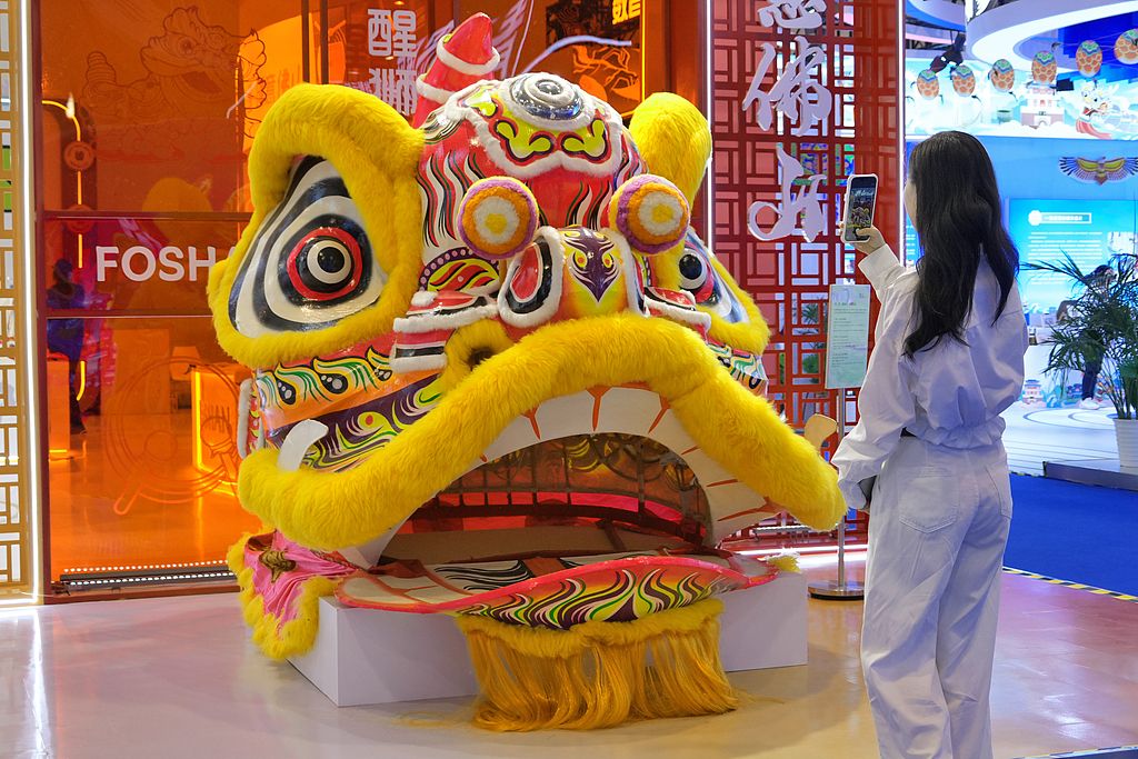 2025年10月17日,山东青岛,观众在第十届中国国际版权博览会上参与兵马俑奇妙夜VR体验。