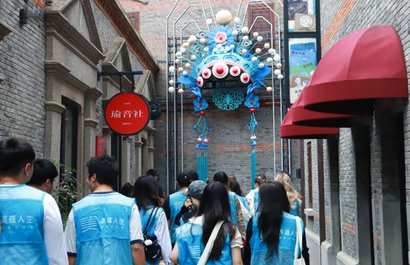 挑选瑜音社,本身就有讲究。瑜音社是由京剧老生演员王珮瑜于2015年创办的京剧工作室,地点位于上海市虹口区今潮8弄石库门历史建筑群。为同学们上课的,正是王珮瑜本人。而今潮8弄,本身也是上海城市更新的典范,这里原本是一片棚户区,如今改造成了年轻人喜欢的历史建筑群打卡点,颇有新天地的味道。